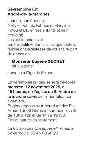 Cet espace « condoléances » est dédié à la mémoire de Monsieur Eugène SECHET.