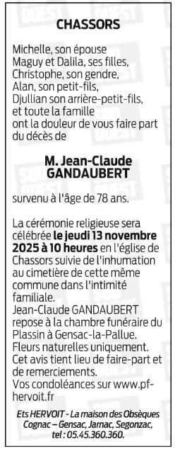 Cet espace « condoléances » est dédié à la mémoire de Monsieur Jean Claude GANDAUBERT.