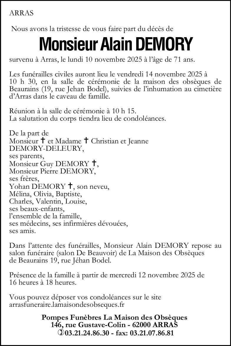 Cet espace « condoléances » est dédié à la mémoire de Monsieur Alain DEMORY.
