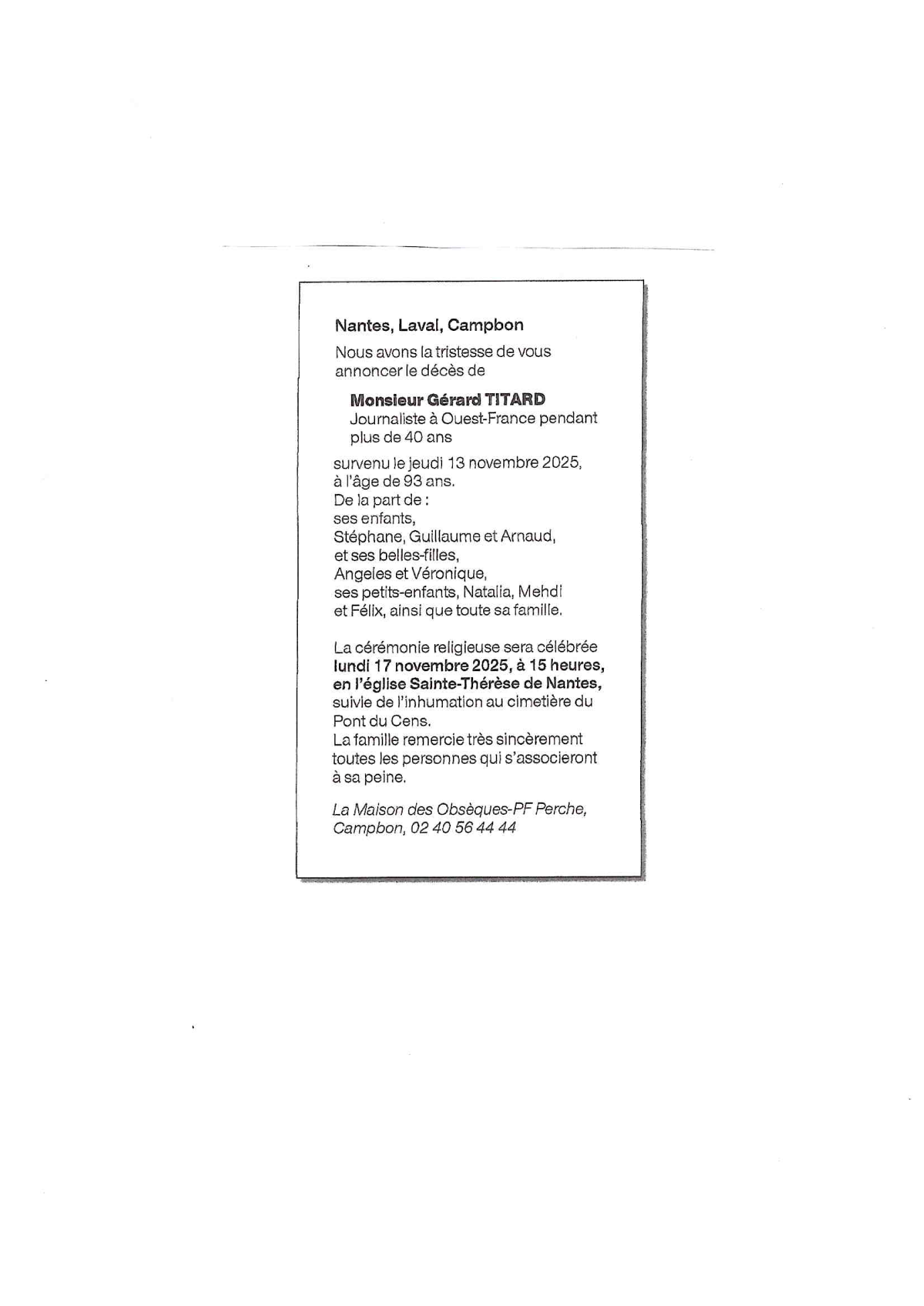Décédé à Campbon (44750) le mercredi 12 novembre 2025