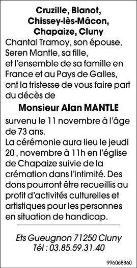 de Monsieur Alan MANTLE