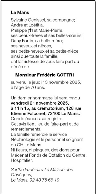 Cet espace « condoléances » est dédié à la mémoire de Monsieur Frédéric GOTTRI.