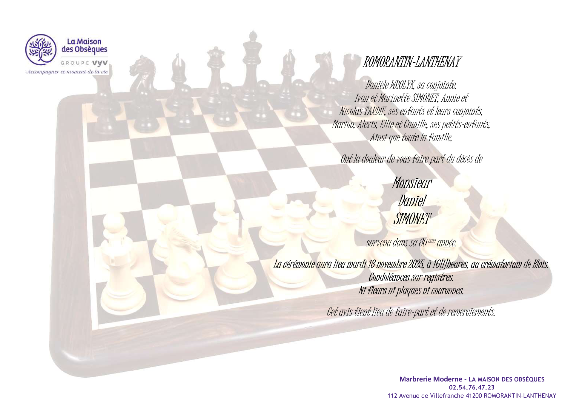 Cet espace « condoléances » est dédié à la mémoire de Monsieur Daniel SIMONET.