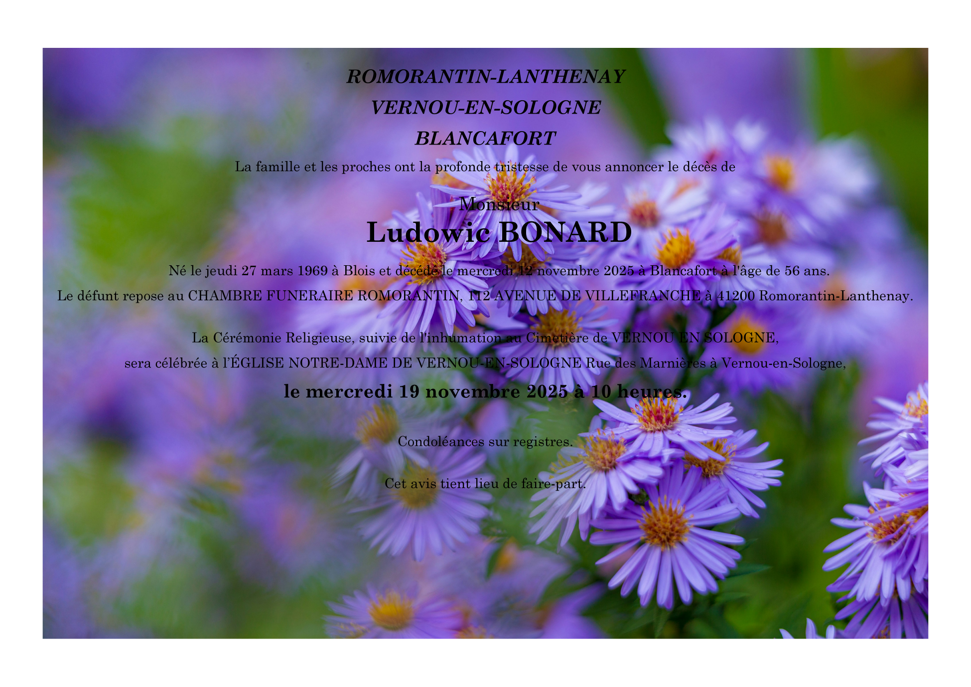 Cet espace « condoléances » est dédié à la mémoire de Monsieur Ludowic BONARD.