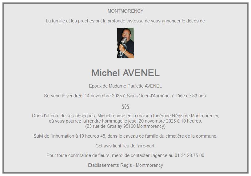 Cet espace « condoléances » est dédié à la mémoire de Monsieur Michel AVENEL.