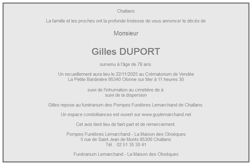 Cet espace « condoléances » est dédié à la mémoire de Monsieur Gilles DUPORT.