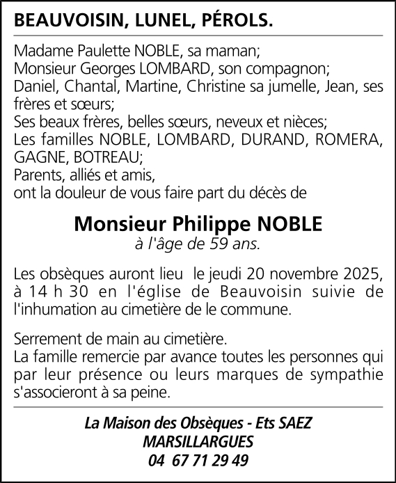 Cet espace « condoléances » est dédié à la mémoire de Monsieur Philippe NOBLE.