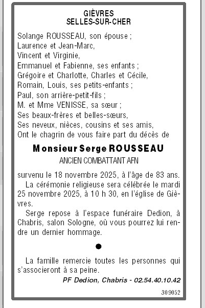 Cet espace « condoléances » est dédié à la mémoire de Monsieur Serge ROUSSEAU.