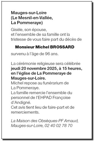 Cet espace « condoléances » est dédié à la mémoire de Monsieur Michel BROSSARD.
