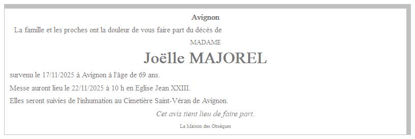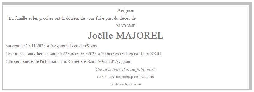 Cet espace « condoléances » est dédié à la mémoire de Madame Joëlle MAJOREL.