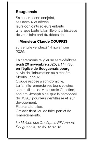de Monsieur Claude COUPRIS