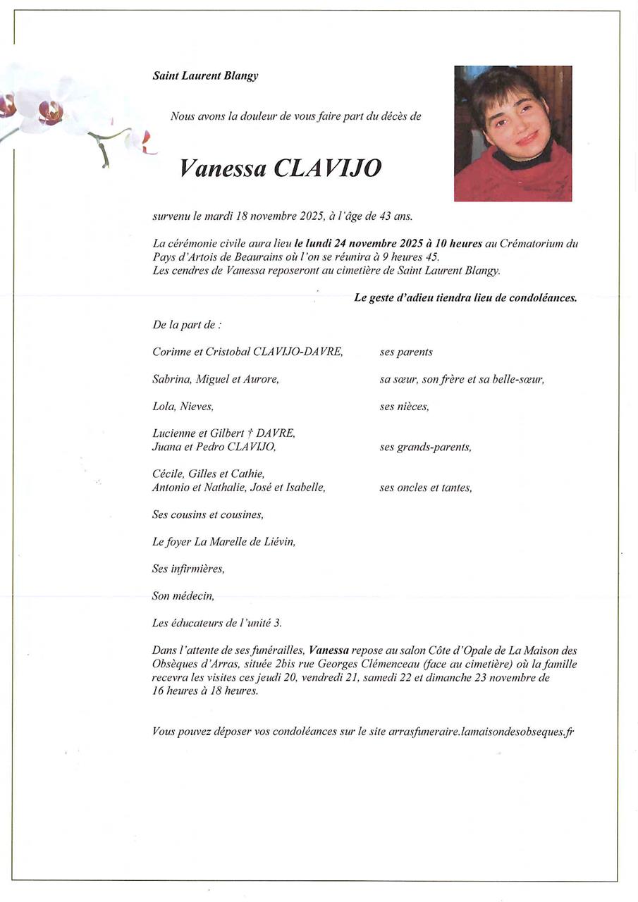 Cet espace « condoléances » est dédié à la mémoire de Madame Vanessa CLAVIJO.
