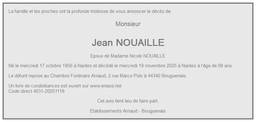 Cet espace « condoléances » est dédié à la mémoire de Monsieur Jean NOUAILLE.
