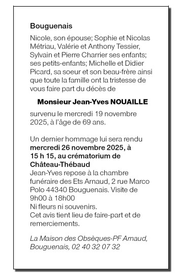 Décédé à Nantes (44000) le mercredi 19 novembre 2025