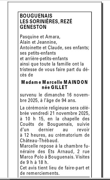 de Madame Marcelle MAINDON née GILLET