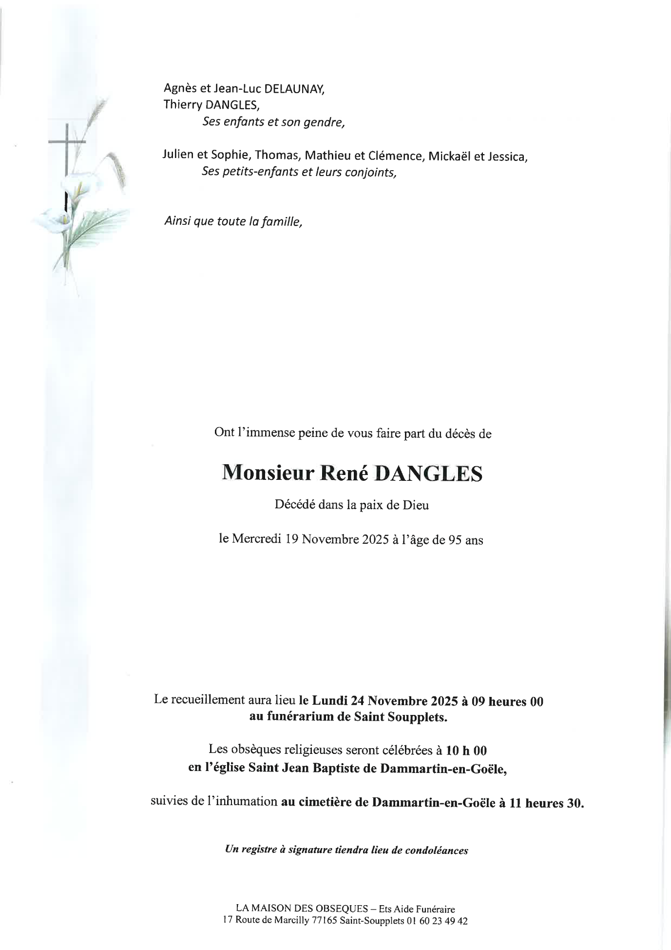 Cet espace « condoléances » est dédié à la mémoire de Monsieur René DANGLES.
