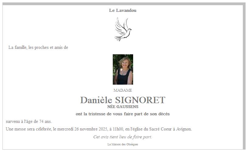 de Madame Danièle SIGNORET née GAUSSENS