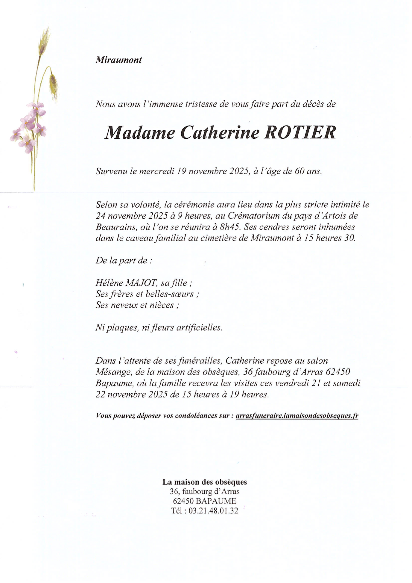 Cet espace « condoléances » est dédié à la mémoire de Madame Catherine ROTIER.