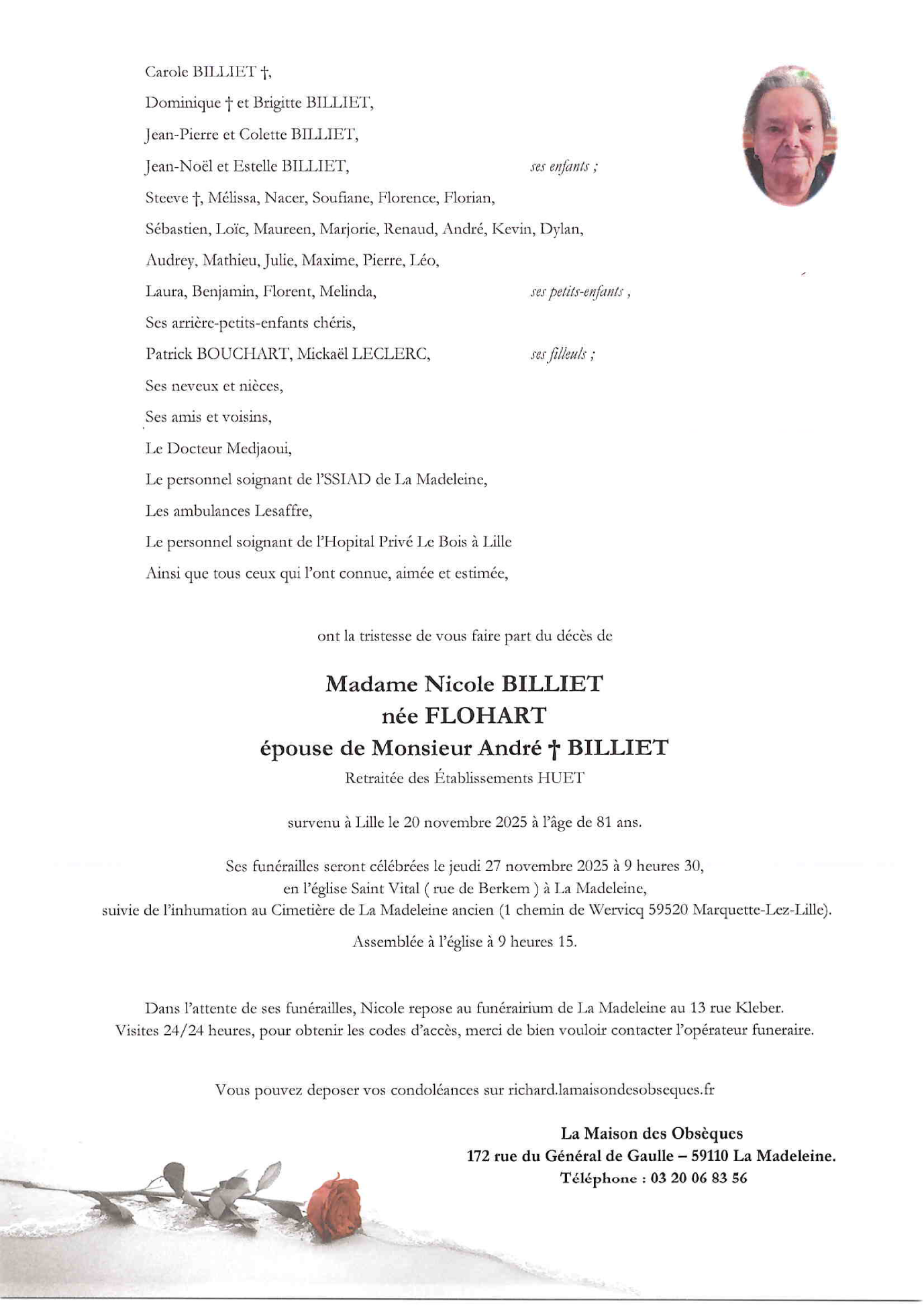 N’hésitez pas à renseigner cette page à vos connaissances. Ceux qui sont loin ou qui n’ont pas la possibilité de se joindre à la cérémonie trouveront ici une façon simple de montrer leurs sentiments à la famille dans ce moment difficile.