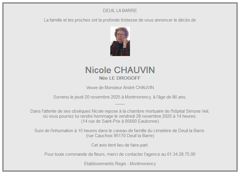 de Madame Nicole CHAUVIN née LE DROGOFF
