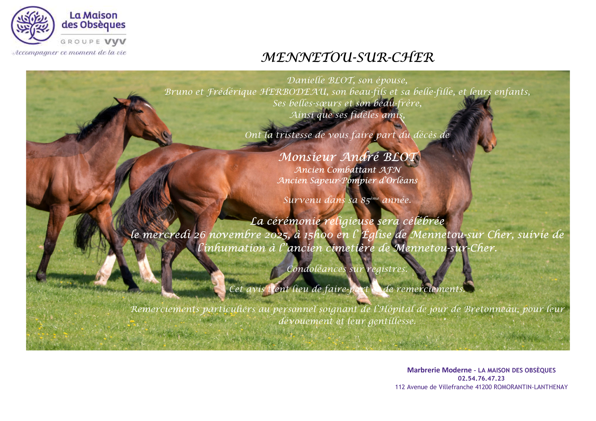 Décédé à Mennetou-sur-Cher (41320) le jeudi 20 novembre 2025