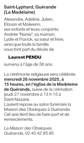 Cet espace « condoléances » est dédié à la mémoire de Monsieur Laurent PENDU.