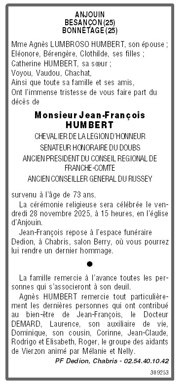 Cet espace « condoléances » est dédié à la mémoire de Monsieur Jean-François HUMBERT.