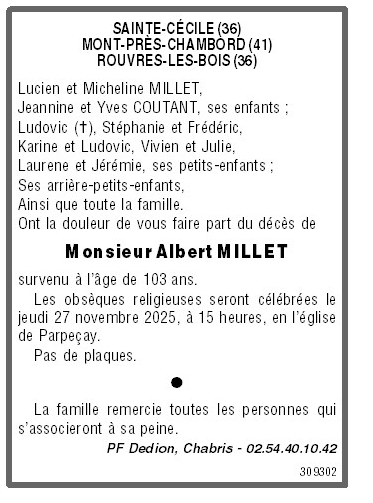 de Monsieur Albert MILLET