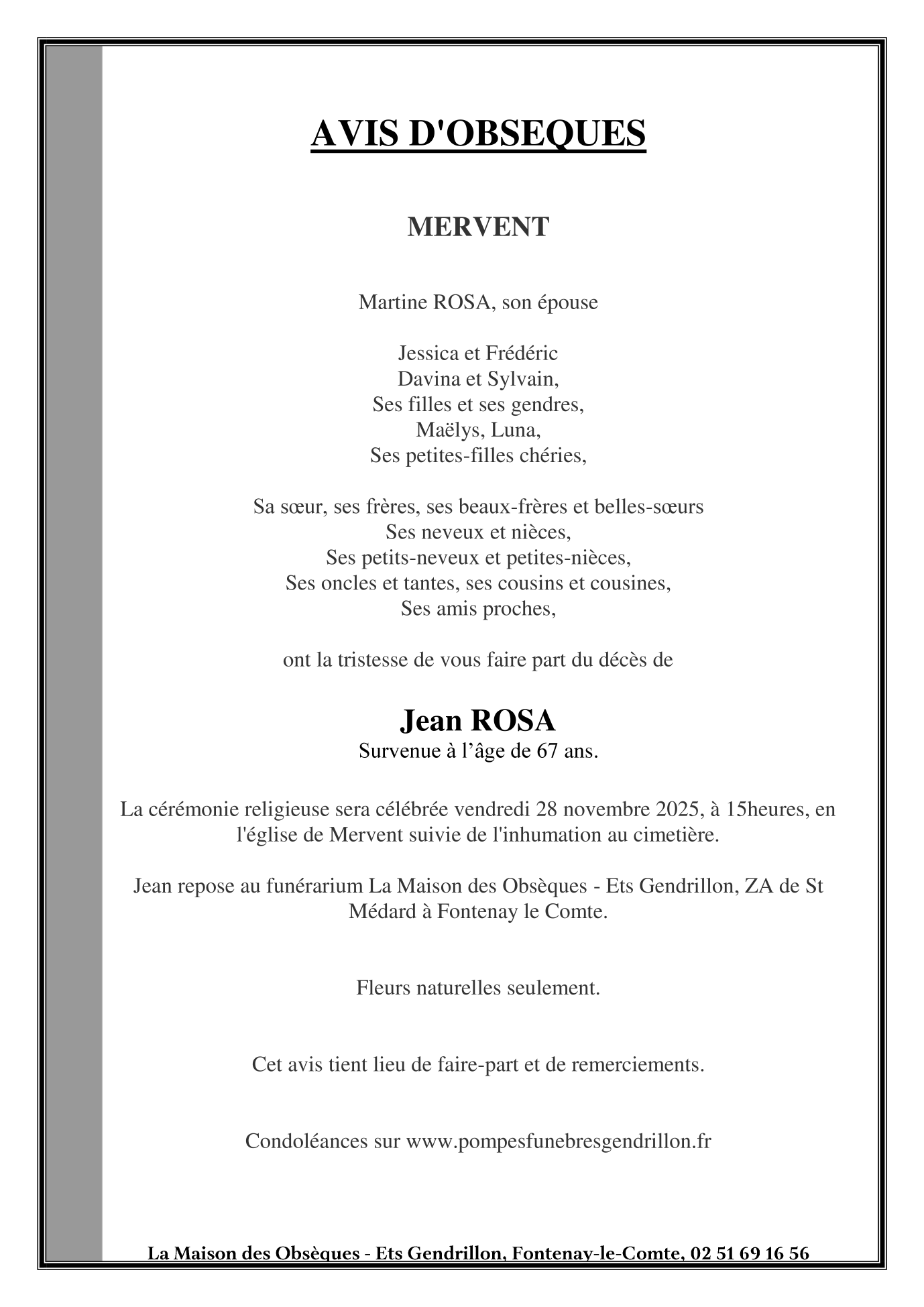 de Monsieur Jean ROSA