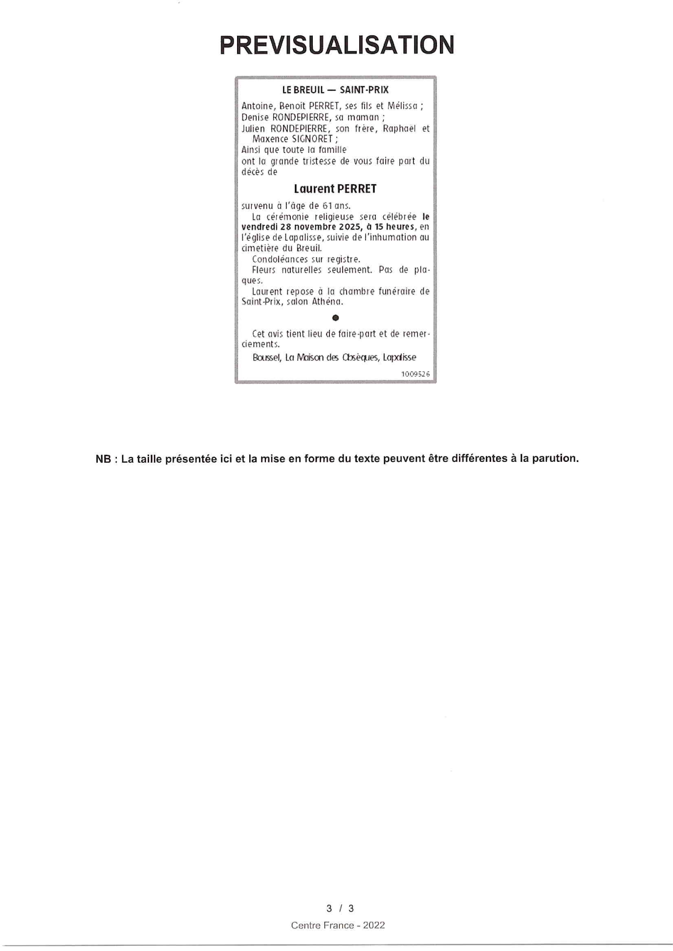 Cet espace « condoléances » est dédié à la mémoire de Monsieur Laurent PERRET.