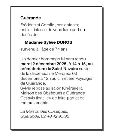de Madame Sylvie DUROS née RAULT