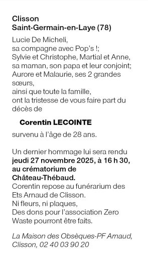 Cet espace « condoléances » est dédié à la mémoire de Monsieur Corentin LECOINTE.