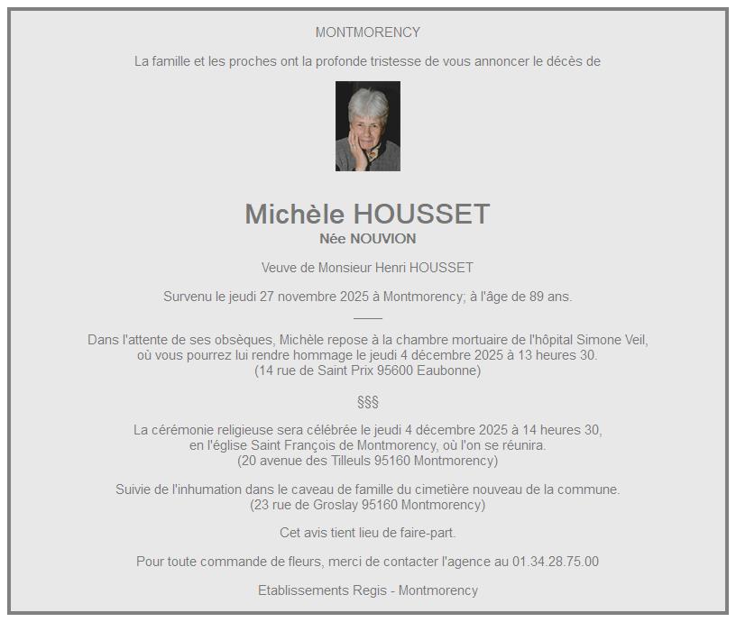de Madame Michèle HOUSSET née NOUVION