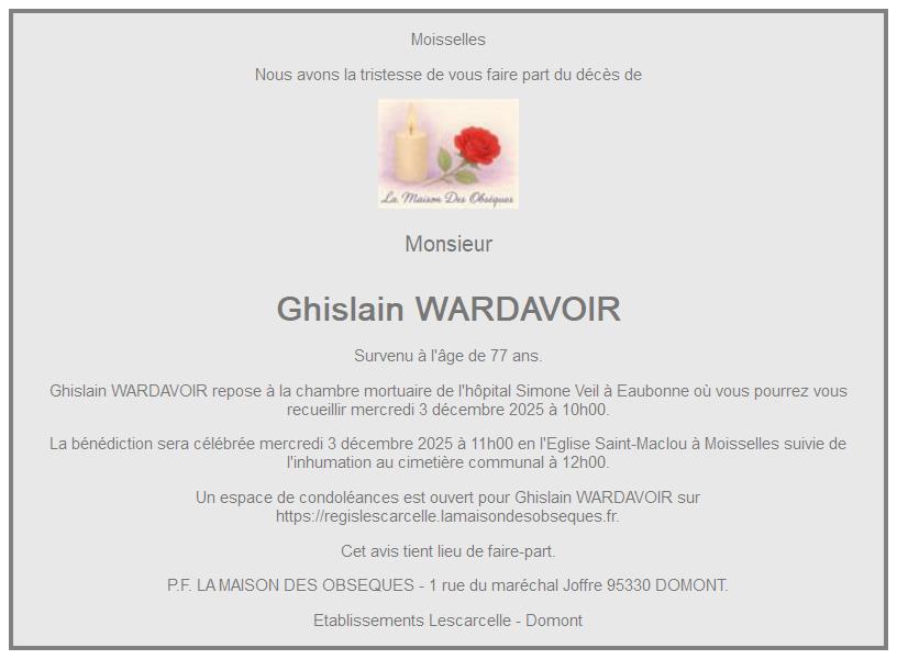 Cet espace « condoléances » est dédié à la mémoire de Monsieur Ghislain WARDAVOIR.