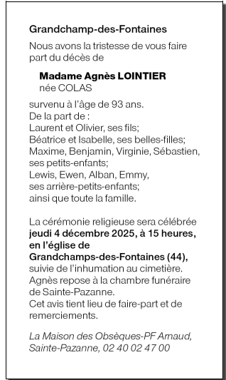 de Madame Agnès LOINTIER née COLAS