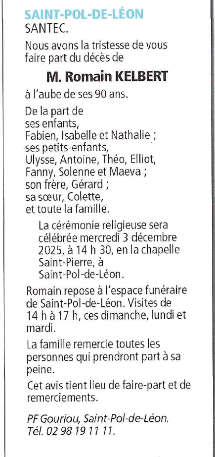 Cet espace « condoléances » est dédié à la mémoire de Monsieur Romain KELBERT.