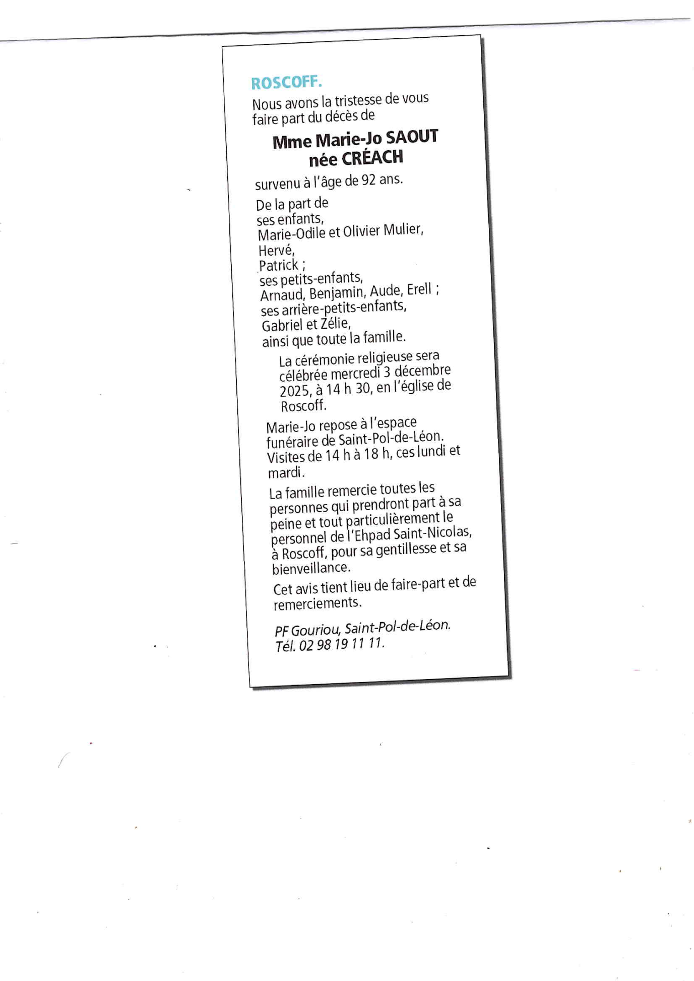 Cet espace « condoléances » est dédié à la mémoire de Madame Marie-Joseph CREACH.