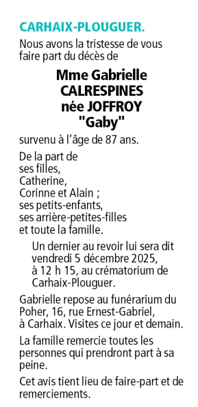 de Madame Gabrielle CALRESPINES née JOFFROY