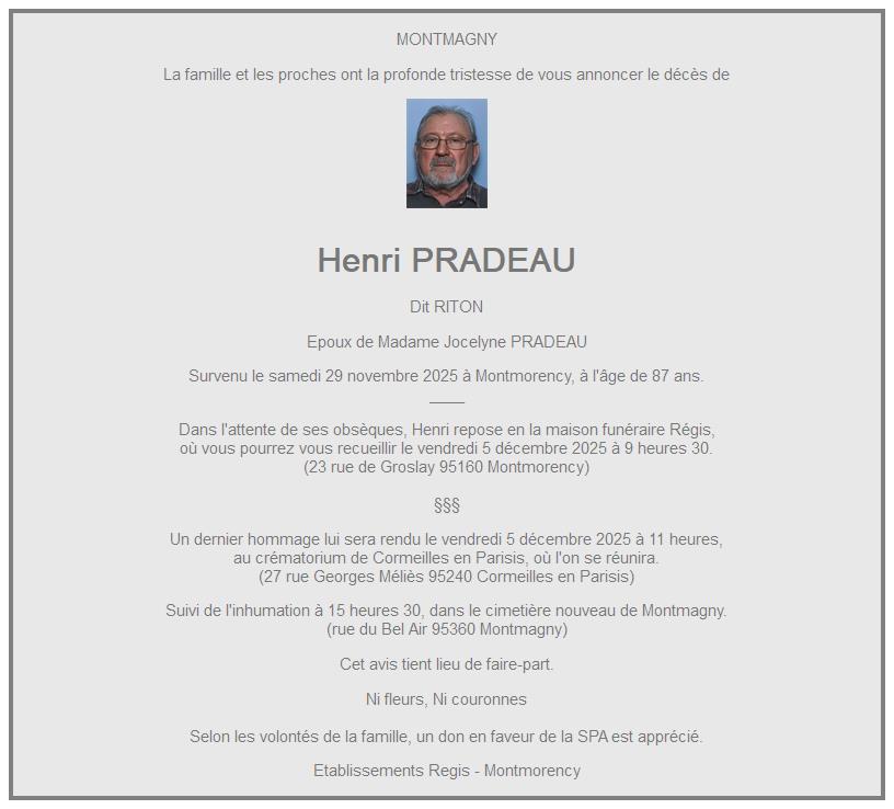 Décédé à Montmorency (95160) le samedi 29 novembre 2025