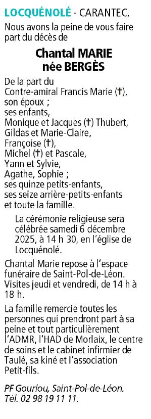 Décédée à Locquénolé (29670) le lundi 1 décembre 2025