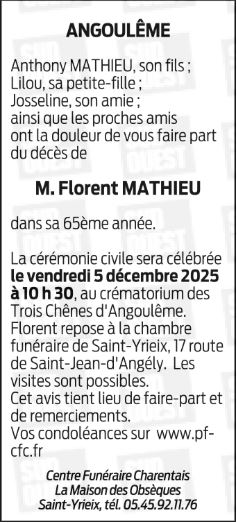 Cet espace « condoléances » est dédié à la mémoire de Monsieur FLORENT MATHIEU.