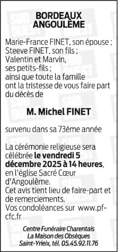 Cet espace « condoléances » est dédié à la mémoire de Monsieur MICHEL FINET.