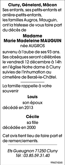 de Madame Marie MAUGUIN née AUGROS