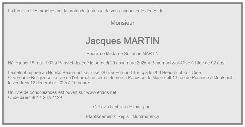 Cet espace « condoléances » est dédié à la mémoire de Monsieur Jacques MARTIN.