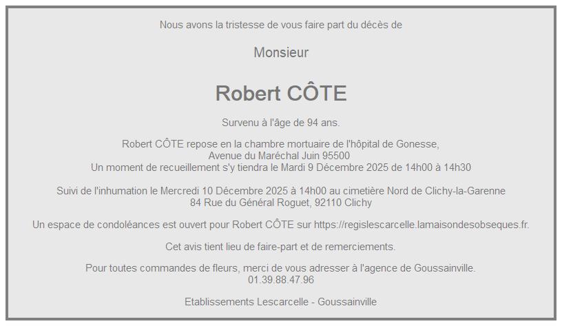 de Monsieur Robert CÔTE