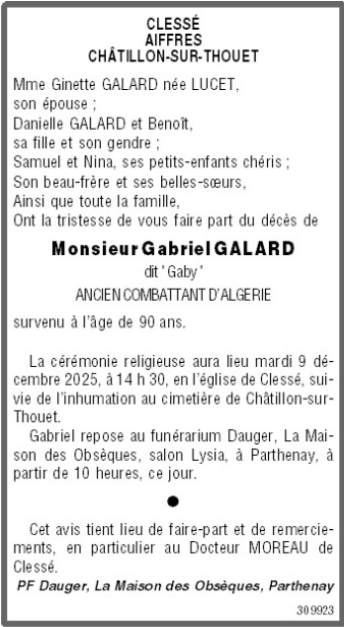Cet espace « condoléances » est dédié à la mémoire de Monsieur Gabriel GALARD.