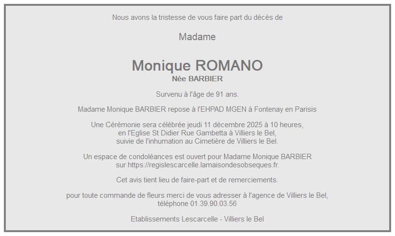 de Madame Monique ROMANO née BARBIER