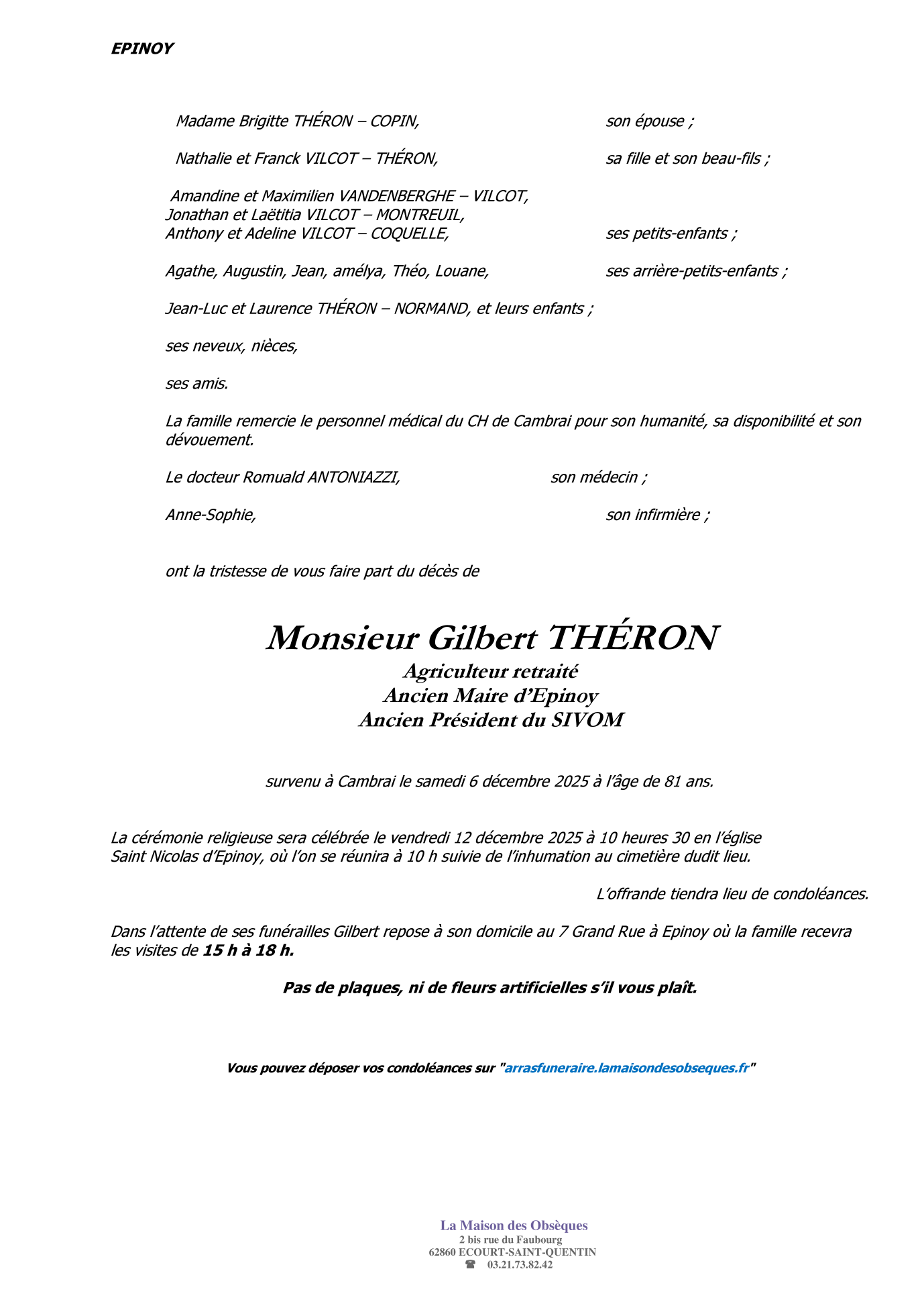 Cet espace « condoléances » est dédié à la mémoire de Monsieur Gilbert THÉRON.