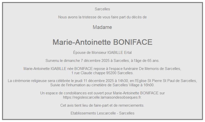 de Madame Marie-Antoinette IGABILLE née BONIFACE