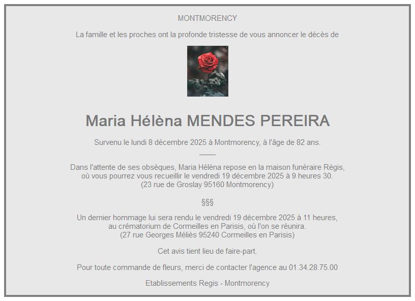 de Madame Maria Hélèna MENDES PEREIRA